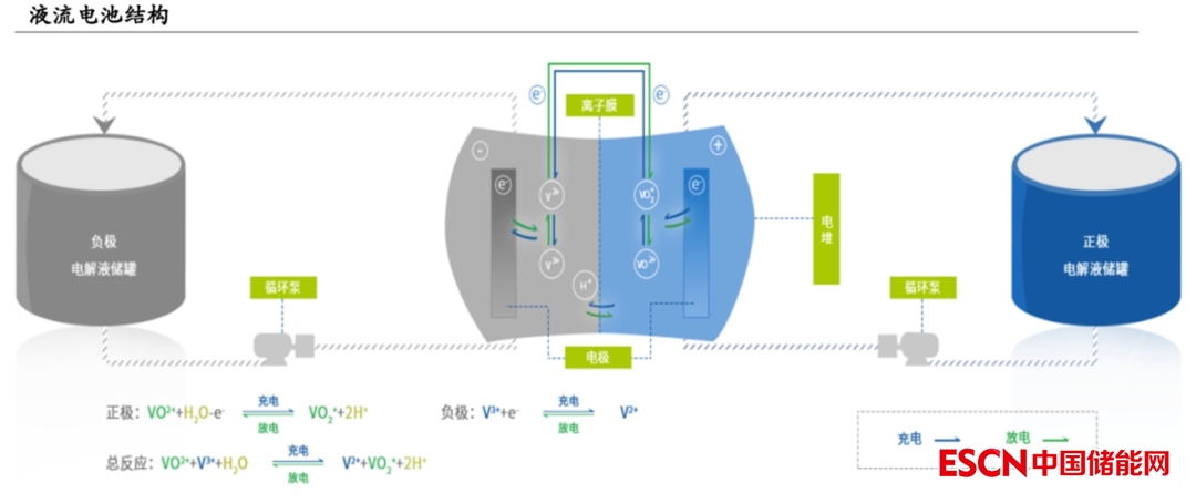 原理是通過(guò)正負(fù)極電解液中的活性物質(zhì)發(fā)生氧化還原反應(yīng)(電解液之間循環(huán))來(lái)儲(chǔ)存和釋放電能。