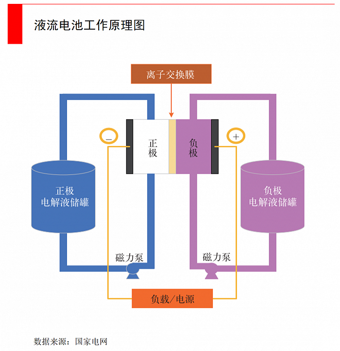 對(duì)于釩液流電池,則是更遠(yuǎn)期的研發(fā)目標(biāo)。釩液流電池的技術(shù)路徑完全不同于鋰離子、鈉離子電池,而是與氫燃料電池原理類似,它是一種活性物質(zhì)呈循環(huán)流動(dòng)液態(tài)的氧化還原電池,它的工作原理是通過釩化合價(jià)的變化,來實(shí)現(xiàn)電能與化學(xué)能之間的轉(zhuǎn)化。