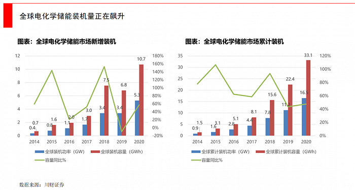 在中國碳中和的大目標(biāo)下,國家能源局給出了快速提升光伏、風(fēng)電等清潔能源的計(jì)劃,這就要求大規(guī)模、系統(tǒng)性的儲(chǔ)能配套。目前全球最多的傳統(tǒng)儲(chǔ)能手段就是抽水蓄能,而在新型儲(chǔ)能里,電化學(xué)儲(chǔ)能增速驚人。