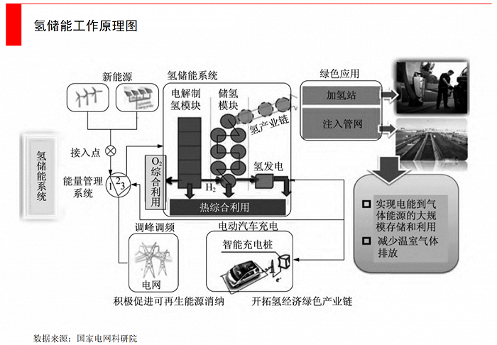 氫儲(chǔ)能:目前爭(zhēng)議還很大的一種技術(shù)路徑。工作邏輯是通過電解水制氫,將多余的電能轉(zhuǎn)化為氫能儲(chǔ)存起來。氫作為儲(chǔ)能介質(zhì),還可以直接用于燃料電池。但目前大規(guī)模制氫的技術(shù)還不夠成熟,能耗很高,以及配套的氫儲(chǔ)運(yùn)技術(shù)也不夠成熟,能利用氫能的場(chǎng)景也比較少。