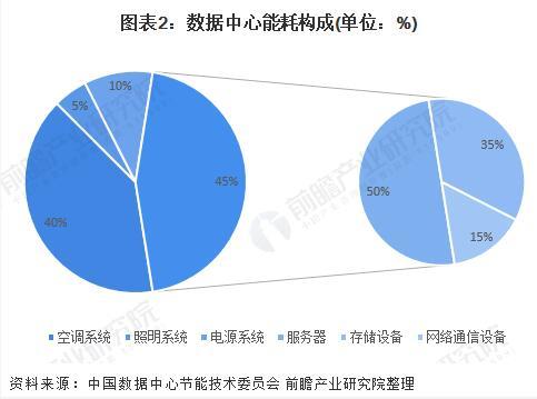 數(shù)據(jù)中心的耗能部分主要包括IT設(shè)備、制冷系統(tǒng)、供配電系統(tǒng)、照明系統(tǒng)及其他設(shè)施(包括安防設(shè)備、滅火、防水、傳感器以及相關(guān)數(shù)據(jù)中心建筑的管理系統(tǒng)等)。整體來看,由服務(wù)器、存儲和網(wǎng)絡(luò)通信設(shè)備等所構(gòu)成的IT設(shè)備系統(tǒng)所產(chǎn)生的功耗約占數(shù)據(jù)中心總功耗的45%。其中服務(wù)器系統(tǒng)約占50%,存儲系統(tǒng)約占35%,網(wǎng)絡(luò)通信設(shè)備約占15%??照{(diào)系統(tǒng)仍然是數(shù)據(jù)中心提高能源效率的重點(diǎn)環(huán)節(jié),它所產(chǎn)生的功耗約占數(shù)據(jù)中心總功耗的40%。電源系統(tǒng)和照明系統(tǒng)分別占數(shù)據(jù)中心總耗電量的10%和5%。