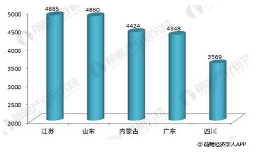 從2017年各省市發(fā)電情況來(lái)看,2017年發(fā)電量排名前五的省份分別是江蘇(4885億千瓦時(shí))、山東(4860億千瓦時(shí))、內(nèi)蒙古(4424億千瓦時(shí))、廣東(4348億千瓦時(shí))和四川(3569億千瓦時(shí))。各區(qū)域發(fā)電量均實(shí)現(xiàn)不同程度的正增長(zhǎng),其中同比增速超過(guò)全國(guó)平均水平(6.6%)的省份有14個(gè),依次為:寧夏(18.3%)、西藏(14.6%)、內(nèi)蒙古(1.0%)、新疆(11.5%)、青海(11.3%)、陜西(11.1%)、甘肅(11.0%)、云南(10.4%)、山西(10.1%)、安徽(9.6%)、江西(9.3%)、福建(9.0%)、廣東(7.7%)、河北(7.3%)。