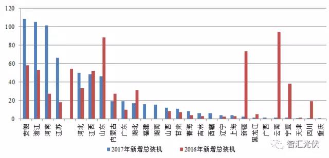 2016年、2017年新增裝機(jī)對比如下圖所示。