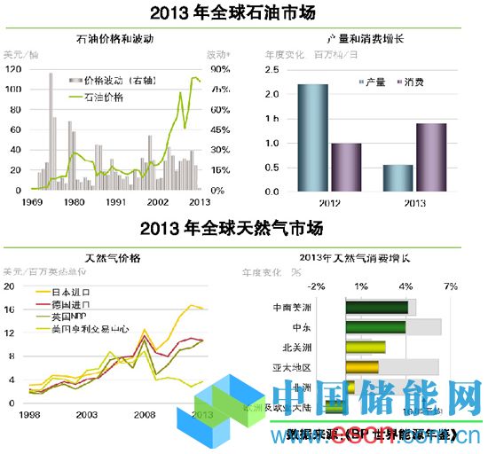 《年鑒》指出,經(jīng)濟狀況對能源需求的影響依然明顯。2013年,全球一次能源消費增長了2.3%,增速快于2012年(增長1.8%),但低于過去10年2.5%的平均增速。