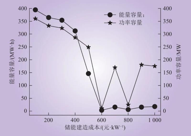 圖10 全開(kāi)放市場(chǎng)下儲(chǔ)能成本對(duì)儲(chǔ)能容量的影響