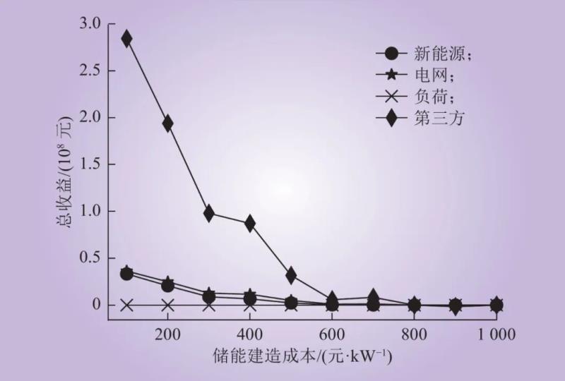 圖9 全開(kāi)放市場(chǎng)下儲(chǔ)能成本對(duì)各方收益的影響