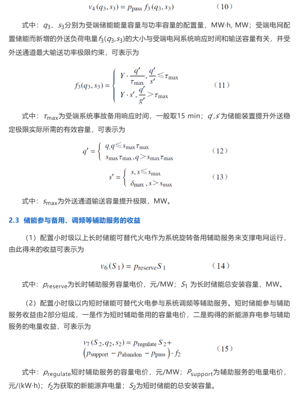 (2)受端電網(wǎng)配置小時(shí)級(jí)及以下短時(shí)儲(chǔ)能作為外送事故備用,可提升外送穩(wěn)態(tài)輸送極限、提高受端電網(wǎng)受電能力,提升新能源外送電量,其收益可表示為