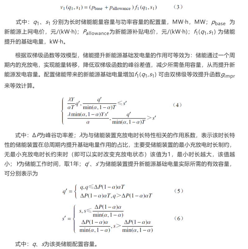 (1)新能源側(cè)配置小時(shí)級(jí)以上長(zhǎng)時(shí)儲(chǔ)能可提升新能源日前調(diào)度的基礎(chǔ)電量,其收益可表示為