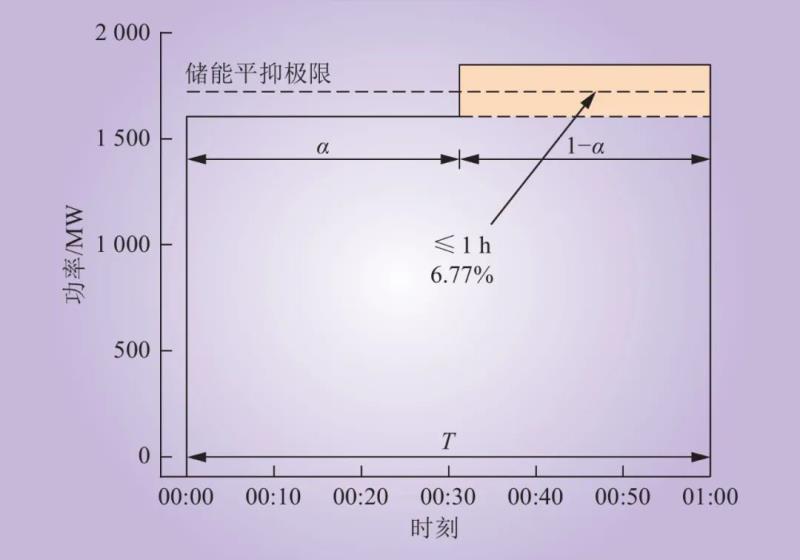 如圖2所示,由該小時(shí)等效出力曲線可知,若僅僅配置了用于平抑日內(nèi)波動(dòng)的長(zhǎng)時(shí)儲(chǔ)能裝置,而缺乏短時(shí)功率波動(dòng)調(diào)節(jié)資源,整體出力維持在小時(shí)內(nèi)最小出力,將有約6.77%的能量被拋棄,占日內(nèi)棄電量的14.95%。如果要消納全部電量,同樣也要配置一定容量的靈活性調(diào)節(jié)資源。