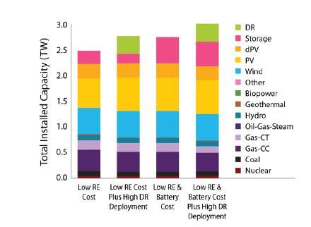 值得關(guān)注的是,即使沒有額外的碳減排政策,可再生能源和儲能系統(tǒng)也會得到大量部署,這表明它們作為提供能源和容量服務(wù)的資源的成本競爭力日益增強。