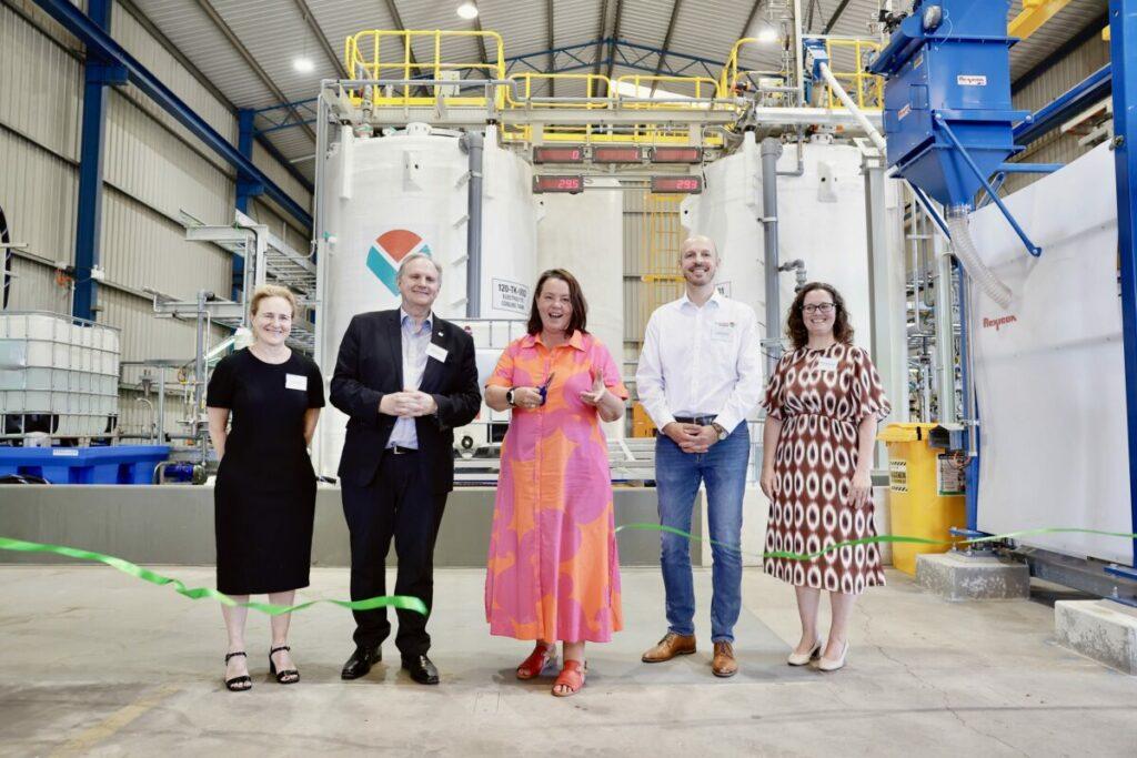 澳大利亞資源部長Madeleine King (中)為AVL公司液流電池電解液工廠的正式啟用剪彩