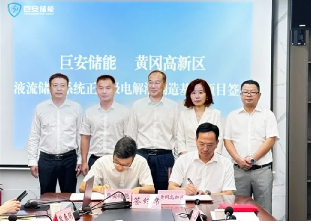 巨安儲能是一家新型大規(guī)模特高安全液流儲能系統(tǒng)專業(yè)技術(shù)公司,擁有國際首創(chuàng)、世界領(lǐng)先的堿性全鐵液流儲能技術(shù),其全球首創(chuàng)的新型鐵基液流電池,解決了影響儲能技術(shù)發(fā)展的安全及成本等核心問題。巨安儲能成立2年多以來,通過電解液、電堆、電池艙(集成系統(tǒng))、BMS的全棧式開發(fā),創(chuàng)造性地為客戶提供大容量、極安全、高能效、低成本的長時儲能系統(tǒng)解決方案。本次巨安儲能鐵基液流儲能電解液制造基地項目將落戶于黃岡高新區(qū)專業(yè)化工園區(qū),規(guī)劃用地面積200畝,分兩期建設(shè)總投資23億元。項目建成后,預(yù)計實現(xiàn)年產(chǎn)60萬噸的鐵基液流系統(tǒng)電解液規(guī)模,可滿足10GWh以上的鐵基液流儲能電站的正負(fù)極電解液需求,其中一期項目將于2024年投產(chǎn),年產(chǎn)能為20萬噸。
