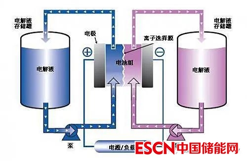 中國儲能網(wǎng)訊:液流電池一種新型電化學儲能技術(shù),是一種新型蓄電池,是一種利用某些元素(通常是金屬)氧化態(tài)的能量差來儲存或釋放能量的電化學轉(zhuǎn)換裝置。液流電池通過正、負極電解質(zhì)溶液活性物質(zhì)發(fā)生可逆氧化還原反應(yīng)(即價態(tài)的可逆變化)實現(xiàn)電能和化學能的相互轉(zhuǎn)化。充電時,正極發(fā)生氧化反應(yīng)使活性物質(zhì)價態(tài)升高,負極發(fā)生還原反應(yīng)使活性物質(zhì)價態(tài)降低,放電過程與之相反。與一般固態(tài)電池不同的是,液流電池的正極和(或)負極電解質(zhì)溶液儲存于電池外部的儲罐中,通過泵和管路輸送到電池內(nèi)部進行反應(yīng)。