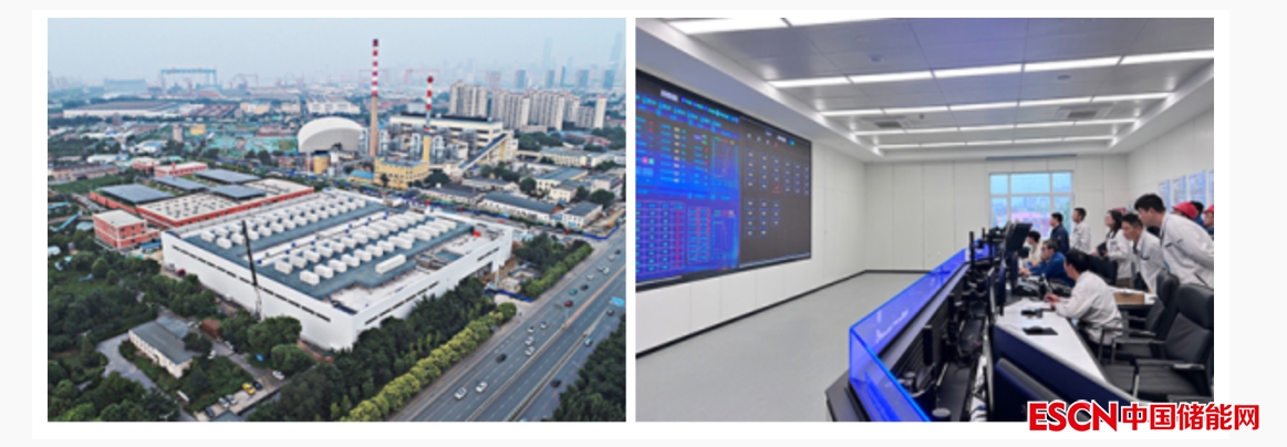 百兆瓦級大連液流電池儲能調峰電站航拍圖(左);百兆瓦級大連液流電池儲能調峰電站中控室(右)。