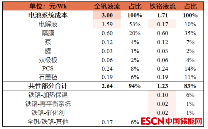 表:全釩電池和鐵鉻電池成本構(gòu)成對(duì)比