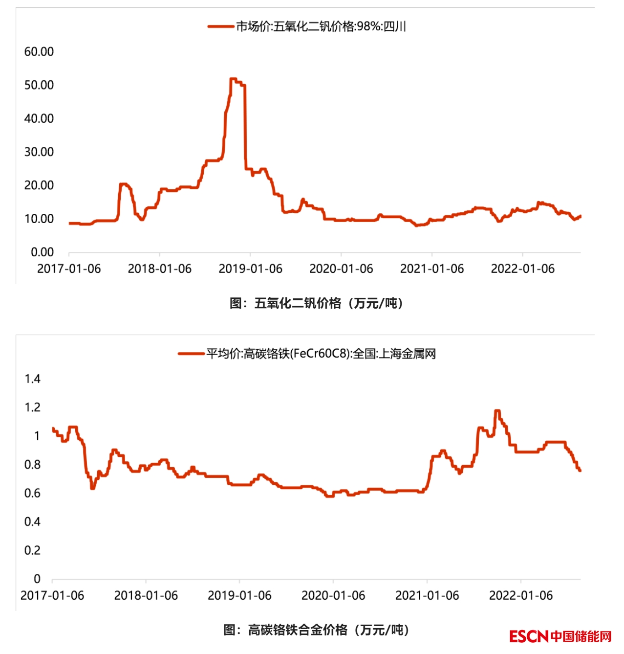 關(guān)鍵材料價(jià)格差異:五氧化二釩和鉻鐵合金
