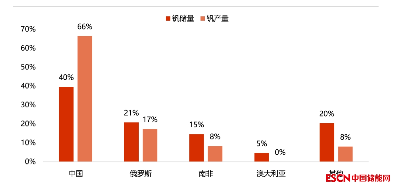 圖:全球釩資源儲(chǔ)量和產(chǎn)量占比