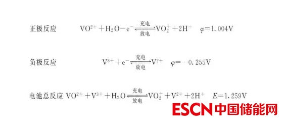 全釩液流電池(Vanadium Redox Battery,VRB),是一種活性物質(zhì)呈循環(huán)流動(dòng)液態(tài)的氧化還原電池。通過兩個(gè)不同化合價(jià)的、被隔膜隔開的釩離子之間交換電子來實(shí)現(xiàn)電能與化學(xué)能的相互轉(zhuǎn)化。釩電池充電后,正極為 V5+,負(fù)極為 V2+;放電后,正負(fù)極分別為 V4+和 V3+溶液。正極和負(fù)極之間由隔膜隔開,該隔膜只允許 H+通過,,H+也就起到了電池內(nèi)部導(dǎo)電的作用。