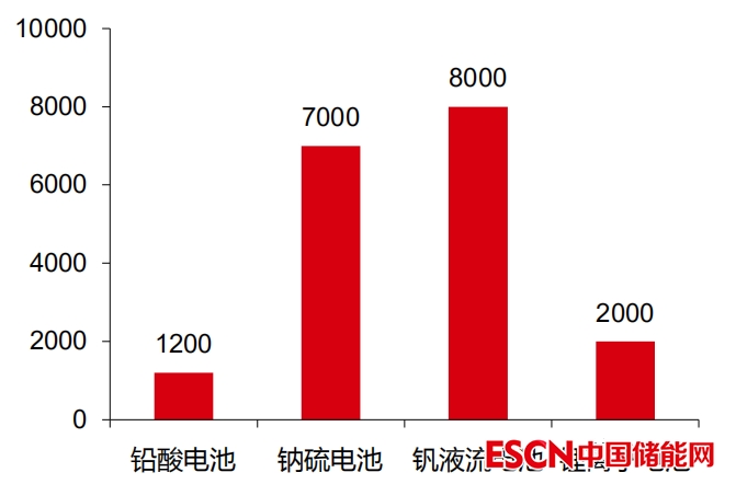 不同儲能系統(tǒng)初次建設(shè)成本對比(元/千瓦時)