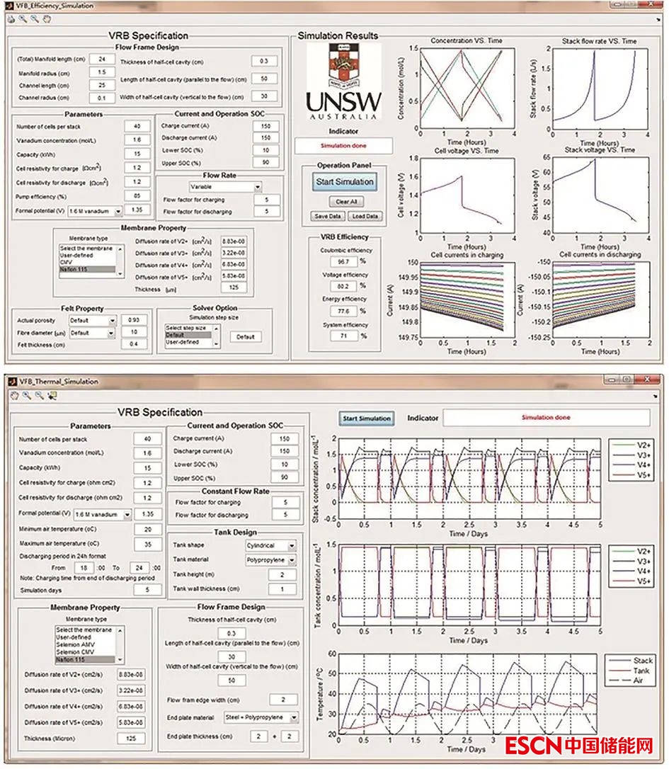 圖9 液流電池能效與溫度模擬仿真平臺(tái)