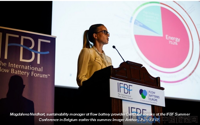 液流電池供應(yīng)商CellCube公司可持續(xù)發(fā)展經(jīng)理Magdalena Neidhart在今年夏天在比利時(shí)舉行的國際液流電池論壇(IFBF)夏季會議上發(fā)表演講
