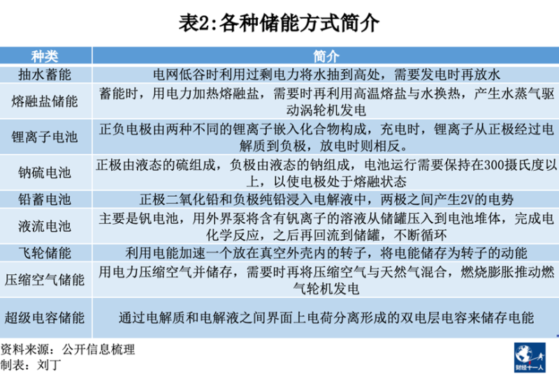 相比于傳統(tǒng)的抽水儲(chǔ)能和熔融鹽儲(chǔ)能,包括鋰離子電池、鉛蓄電池、鈉硫電池、壓縮空氣、液流電池(目前主要是釩電池)、超級(jí)電容和飛輪儲(chǔ)能在內(nèi)的儲(chǔ)能方式被稱之為新型儲(chǔ)能。