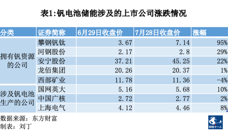近日,釩電池概念帶動(dòng)若干股票大幅波動(dòng)。尤其是釩資源龍頭企業(yè)攀鋼集團(tuán)釩鈦資源股份有限公司(000629.SZ,下稱攀鋼釩鈦),其股價(jià)自6月29日以來接近翻倍。