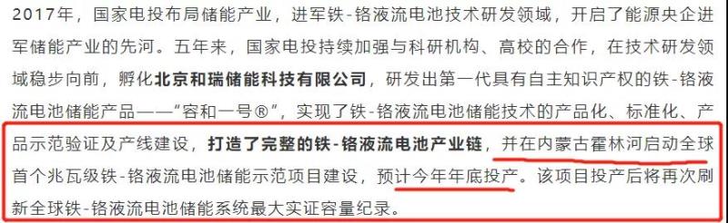 其實(shí)早在2020年底,國(guó)家電投就已經(jīng)成功試制了鐵鉻液流電池——“容和一號(hào)”大容量?jī)?chǔ)能設(shè)備,而且250kW/1.5MWh的示范項(xiàng)目已經(jīng)在河北穩(wěn)定運(yùn)行超過(guò)400天,期間完成200余次充放電循環(huán),并且經(jīng)受了當(dāng)?shù)囟竞洵h(huán)境的考驗(yàn),近期還為冬奧會(huì)地區(qū)持續(xù)穩(wěn)定存儲(chǔ)、提供清潔能源超過(guò)5萬(wàn)千瓦時(shí)。