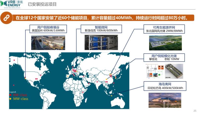 北京普能是2007年成立之后就一直關(guān)注在全釩液流電池儲(chǔ)能技術(shù),目前我們的產(chǎn)品已經(jīng)在全球12個(gè)國(guó)家安裝了近60個(gè)儲(chǔ)能項(xiàng)目,累計(jì)容量超過(guò)60兆瓦時(shí),且沒(méi)有發(fā)生任何的安全與運(yùn)行事故。