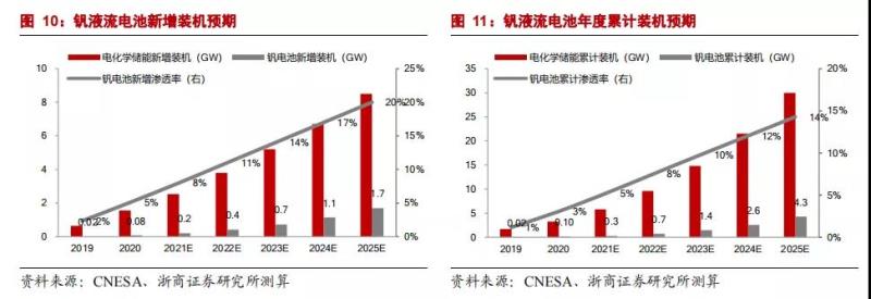 近年來,我國儲能裝機量迅速增長,釩電池相關(guān)儲能項目也取得大量進展。以釩電池為代表的液流電池,2019 年裝機規(guī)模為 20MW,2020 年裝機規(guī)模達 100MW,釩電池裝機量增長迅速。目前我國釩電池滲透率 1%左右,未來發(fā)展前景廣闊。
