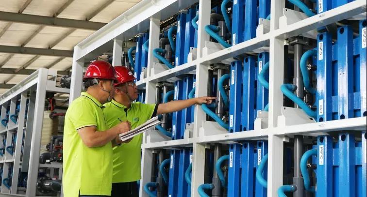 普能公司的質(zhì)保團(tuán)隊(duì)正在對湖北襄陽3MW/12MW VRB-ESS®的電堆和電解液儲(chǔ)罐進(jìn)行例行檢查。