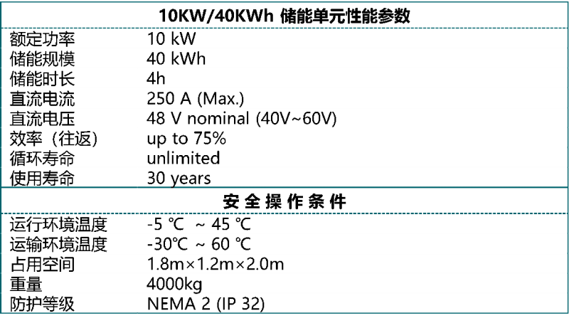 千瓦級全釩液流電池能量儲(chǔ)存系統(tǒng)(VRB KW-ESS®)是一種先進(jìn)的液流電池,單個(gè)模塊額定功率為10KW。能夠提供可靠、高性能的能量儲(chǔ)存。主要應(yīng)用于將全釩液流電池能量儲(chǔ)存系統(tǒng)集成到局域性的孤立社區(qū),遠(yuǎn)程通訊基站以及任何一個(gè)由風(fēng)能、太陽能或化石燃料提供能源的能量管理系統(tǒng)中,都可以為客戶產(chǎn)生直接的經(jīng)濟(jì)效益。
