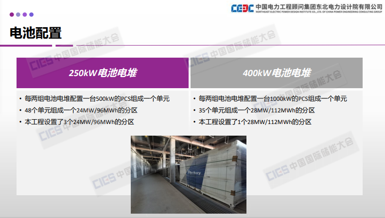 在這個(gè)電站里配備了兩種規(guī)格的電池,一種是250KW電池電堆,一種是400KW電池電堆,形成了三個(gè)分區(qū),3個(gè)24WM的分區(qū)和1個(gè)28MW的分區(qū),加在一起正好是100MW/400MWh。時(shí)至今日,這個(gè)電站的容量規(guī)模算的上是一個(gè)最大的電化學(xué)儲能電站。