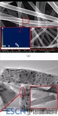 圖4 CeO2/ECNFs電極的SEM(a)、TEM(b)圖