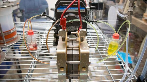 中國(guó)儲(chǔ)能網(wǎng)訊:隨著太陽(yáng)能和風(fēng)能近年來(lái)掀起價(jià)格革命,儲(chǔ)能倒成了大問題。人們需要一種大型、廉價(jià)而耐用的電池,在日落之后、風(fēng)停之后提供電力。近日發(fā)表在《焦耳》(Joule)雜志上的一篇論文介紹道,哈佛大學(xué)的研究人員利用一種有機(jī)“長(zhǎng)壽”分子制作出液流電池,儲(chǔ)存的能量可以為整座城市供電。該電池既解決了全釩液流電池的成本問題,又突破了有機(jī)液流電池的壽命瓶頸。所謂的液流電池和手機(jī)里的鋰電池一樣,都由將電解質(zhì)中存儲(chǔ)的能量轉(zhuǎn)換成電能的電極對(duì),以及將電荷從一個(gè)電極傳送到另一個(gè)電極的電解質(zhì)組成。不過,傳統(tǒng)電池將電極對(duì)和電解質(zhì)一起封裝,液流電池則將正負(fù)電極分開,電解液各自循環(huán)。這些電解液儲(chǔ)存在任意大小的外部容器中,在使用時(shí)泵入電極。因此,液流電池的充電容量可以提高到百萬(wàn)瓦特級(jí)別。全釩液流電池是現(xiàn)在主流的一種液流電池,比鋰離子電池更安全,更便宜,更耐用。然而,擔(dān)任電解質(zhì)的釩金屬顆粒比較昂貴,化學(xué)家一直試圖用一類名為“醌”的有機(jī)化合物作為替代品。使用這類有機(jī)物制作電解質(zhì),成本僅為全釩液流電池的三分之一,但它們?cè)诜磸?fù)充放電后損耗很快,無(wú)法達(dá)到工業(yè)界的要求。這是有機(jī)液流電池?zé)o法商業(yè)化的主要原因。