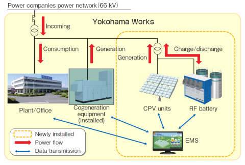 同時,住友電工還計劃進(jìn)行一項工廠能源管理系統(tǒng)(FEMS)的演示測試,將現(xiàn)有的汽油發(fā)電機(jī)與氧化還原液流電池和CPV發(fā)電組結(jié)合在一起,形成一個控制橫濱工廠整個能量流的最優(yōu)管理系統(tǒng)。該公司將與明電舍合作進(jìn)行此項演示,此舉是打造“橫濱智能城市計劃”