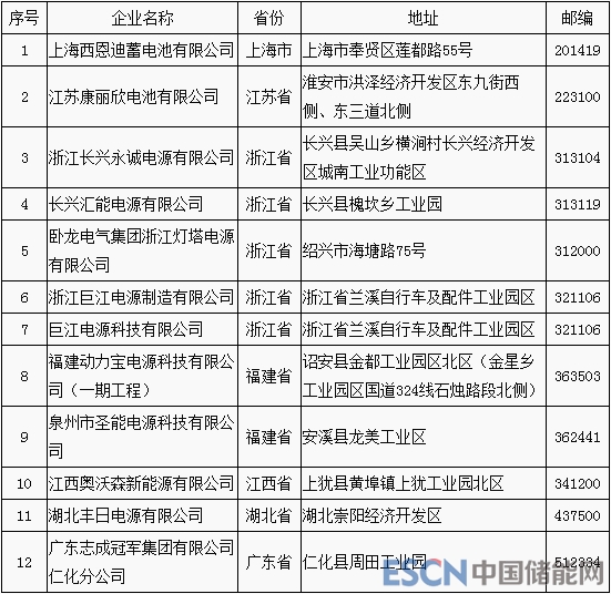 中國儲(chǔ)能網(wǎng)訊:11月1日,工信部發(fā)布了《符合<鉛蓄電池行業(yè)規(guī)范條件(2015年本)>企業(yè)名單(第五批)》,西恩迪、圣能電源等12家企業(yè)列入,詳情如下: