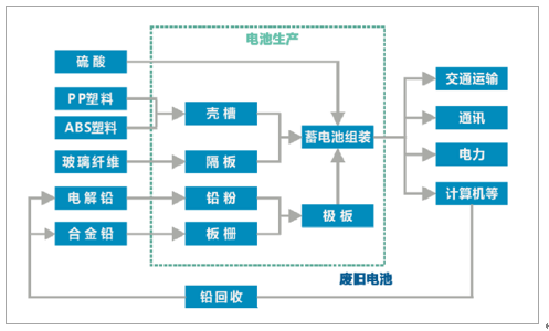 鉛酸蓄電池行業(yè)的上游行業(yè)主要是鉛冶煉和鉛貿易(大宗商品代理商),下游行業(yè)則包括交通運輸、通訊、電力、計算機、科研等領域。隨著鉛酸蓄電池回收體系的建立和完善,鉛酸蓄電池產業(yè)鏈將形成良性的“資源-產品-再生資源”的閉環(huán)結構,有望成為資源節(jié)約型的循環(huán)發(fā)展產業(yè)。