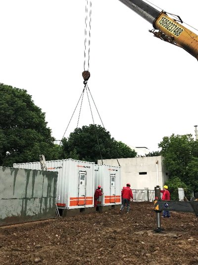 蘇州四洲食品儲能電站的方案及設計完成后,現(xiàn)場立即開始安裝預制基礎模塊,同時標準化集裝箱模塊在工廠開始組建。在預制基礎安裝完畢,集裝箱到達現(xiàn)場并吊裝,整個施工周期不超過一周,創(chuàng)造了南都儲能電站施工時間最短記錄。