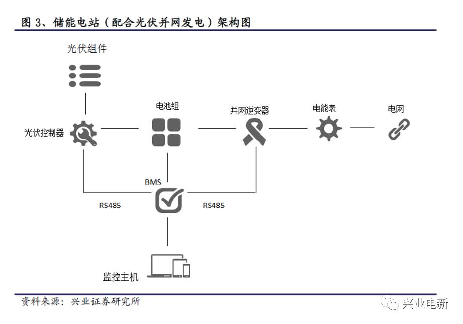 當儲能電站配合光伏并網發(fā)電時,光伏組件首先利用太陽能電池板的光伏效應將光能轉換為電能,之后對電池組進行充電,通過逆變器將直流電轉換為交流電對負載進行供電;BMS根據(jù)日照強度與負載的變化,實時調節(jié)蓄電池組的充放電狀態(tài),使整個系統(tǒng)保持了連續(xù)性和穩(wěn)定性。