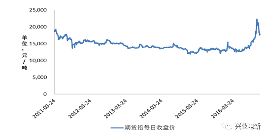 此外,我國于2011年3月24日在上海商品交易所推出鉛期貨,豐富了我國鉛市場的交易品種,使得市場參與者開始可以利用鉛期貨或是其他價格相關(guān)性較強的有色金屬期貨進行一定的風(fēng)險對沖,也極大地完善了我國有色金屬期貨市場。從圖9可以看到,自推出之日起,期貨鉛的收盤價大致保持在一個比較平穩(wěn)的狀態(tài),2016年有所上升。