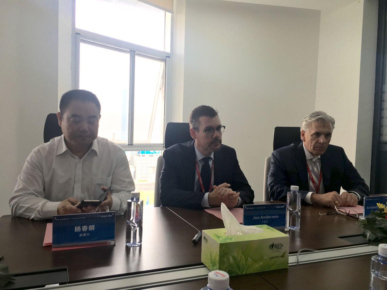 (從右至左依次為:西恩迪CEO Armand 、西恩迪CTO Jon Anderson、新春興董事長(zhǎng)楊春明)