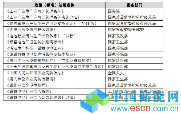中國儲能網(wǎng)訊:二次電池行業(yè)所涉及的法律法規(guī)主要包括生產(chǎn)許可和環(huán)境保護(hù)兩個方面。其中,國家質(zhì)檢總局負(fù)責(zé)實施生產(chǎn)許可證制度,鉛酸蓄電池生產(chǎn)過程中的環(huán)保不達(dá)標(biāo)被列為關(guān)注重點,任何環(huán)保設(shè)施不健全,或雖有設(shè)施、但環(huán)境監(jiān)測不合格的企業(yè)均將失去生產(chǎn)該類產(chǎn)品的資格;國家環(huán)保部負(fù)責(zé)行業(yè)環(huán)?;局贫燃案黜棴h(huán)保政策、法規(guī)和標(biāo)準(zhǔn)的制定和監(jiān)管;國家衛(wèi)生部負(fù)責(zé)職業(yè)病防治政策、法規(guī)及標(biāo)準(zhǔn)的制定和監(jiān)管。2012年5月11日,國家工信部和環(huán)保部發(fā)布《鉛蓄電池行業(yè)準(zhǔn)入條件》,自2012年7月1日起實施,現(xiàn)有鉛蓄電池及其含鉛零部件生產(chǎn)項目,均應(yīng)于2013年12月31日前達(dá)到本準(zhǔn)入條件的要求。相關(guān)政策法規(guī)具體如下: