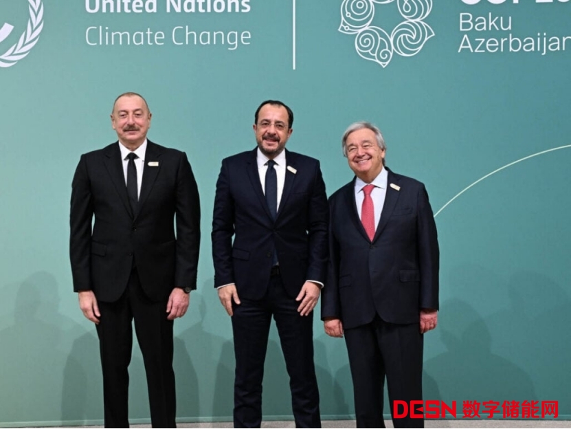 塞浦路斯總統(tǒng)尼科斯··赫里斯托祖利季斯(中)在阿塞拜疆舉行的COP29氣候大會(huì)上與聯(lián)合國(guó)秘書長(zhǎng)安東尼奧·古特雷斯(右)合影