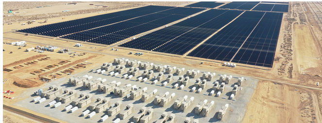 這個太陽能發(fā)電場規(guī)模龐大,占地4600英畝,由190萬塊美國First Solar公司制造光伏組件構建而成。其中太陽能發(fā)電場裝機容量為875MW,以及近3.3GWh電池儲能系統。