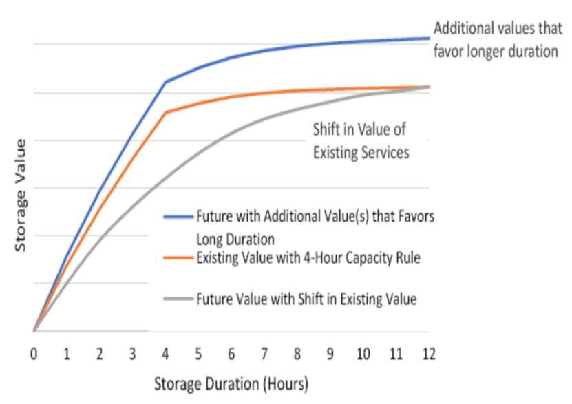 4小時容量規(guī)則是對容量價值和持續(xù)時間之間復(fù)雜關(guān)系的簡化,它反映了儲能市場的近期情況(僅在某些地區(qū))。隨著時間的推移,容量規(guī)則可能會演變,以反映電網(wǎng)運(yùn)營條件的變化,這可能會改變價值曲線的形狀,并可能要求儲能系統(tǒng)提價更長的持續(xù)時間。