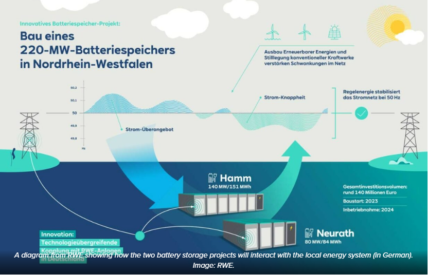 跨國能源公司RWE已經(jīng)開始在德國建設(shè)兩個電池儲存項(xiàng)目,總?cè)萘繛?20MW/235MWh。RWE將在紐拉特和漢姆兩個發(fā)電廠投資1.4億歐元(1.5億美元)建設(shè)這兩個項(xiàng)目,其中紐拉特項(xiàng)目總?cè)萘繛?0MW/84MWh,需要投資5,000萬歐元,而漢姆電池的容量為140MW/151MWh,需要投資9,000萬歐元。這兩個項(xiàng)目計(jì)劃從2024年下半年開始進(jìn)入該國的平衡市場,并參與批發(fā)能源市場。