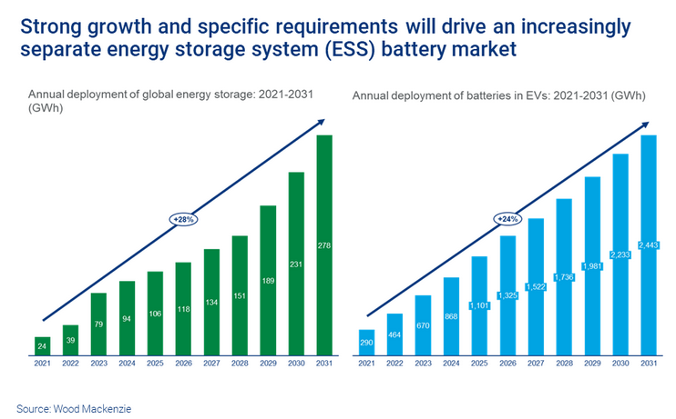 1、用于儲能系統(tǒng)的電池和動力電池的分化正在加速
