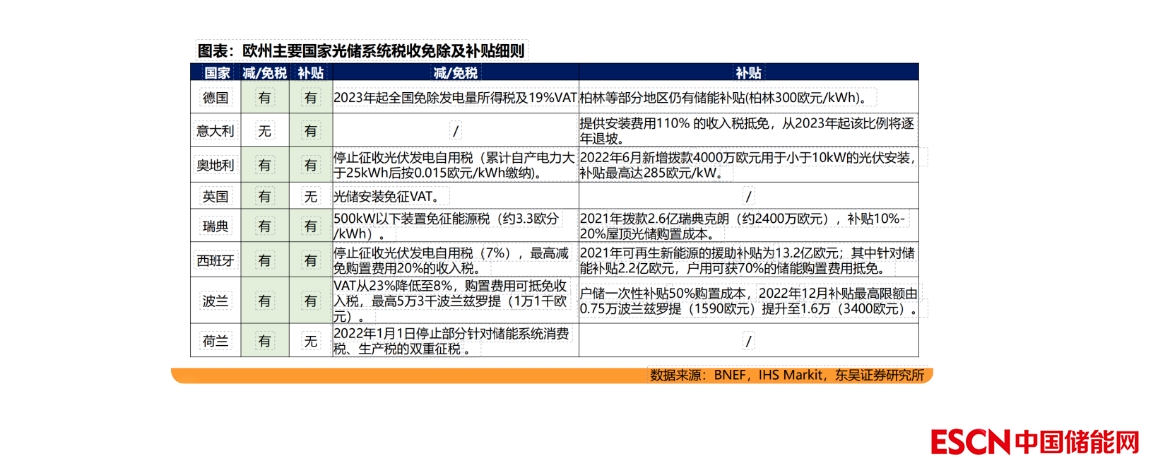全國免除戶用光伏VAT、所得稅。2022年12月初,德國政府通過了有關(guān)光儲的稅收減免政策:1)在2022年稅年,為符合要求的戶用光伏系統(tǒng)免除發(fā)電量所得稅;2)對所有2023年起投運的戶用光伏儲能系統(tǒng)免除采購、進口和安裝過程中產(chǎn)生的增值稅(VAT),此增值稅為19%,在安裝商報價時直接扣除增值稅,配套的儲能系統(tǒng)可同樣享受,但若單獨安裝(含加裝)戶儲不享增值稅豁免。