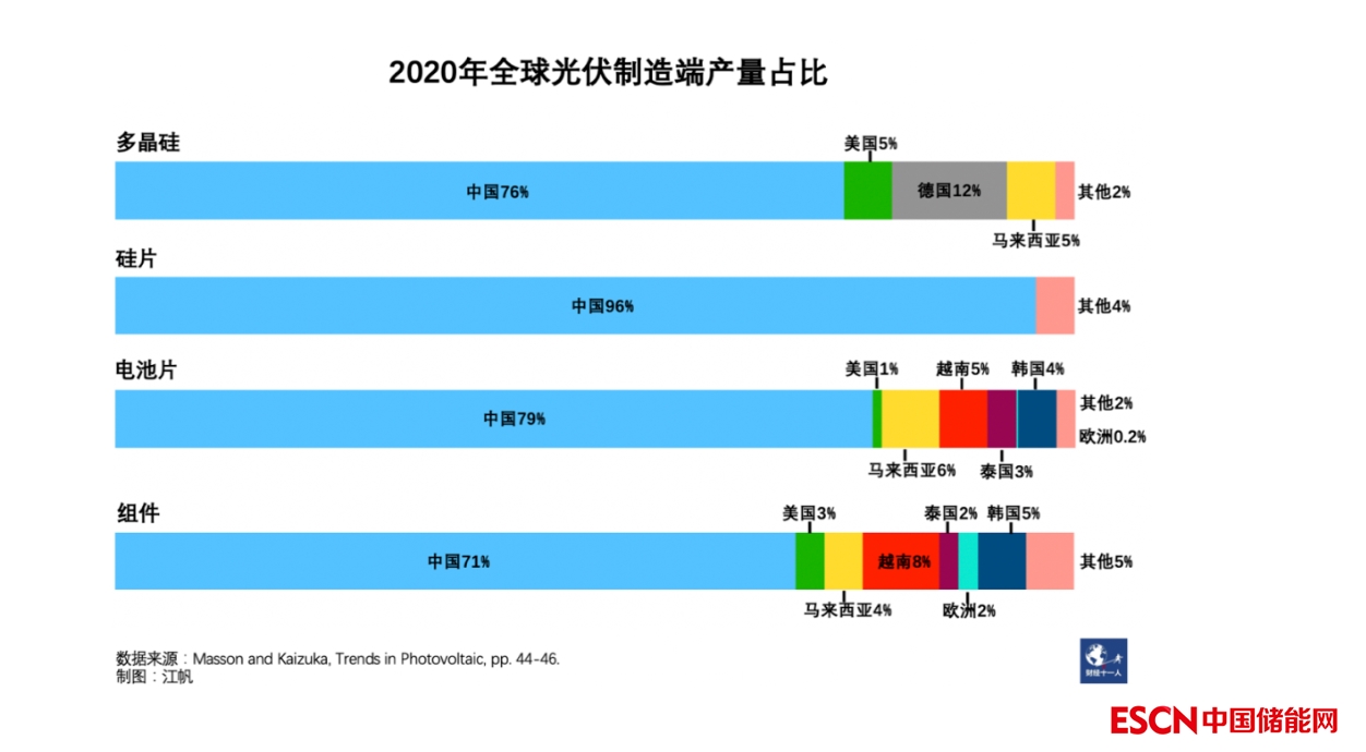 中國光伏作為供方的話語權(quán)不斷增強(qiáng),歐美重振本土光伏制造、分散光伏供應(yīng)鏈的決心也在加大。